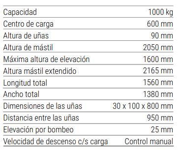 Apilador Estándar KRAFTER SDJA1000 1T x 1.6MTS