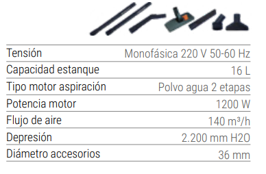 Aspiradora Polvo Agua LAVA WET 16LTS 1200W IPC SOTECO