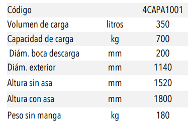 •Peso sin manga 180 kg