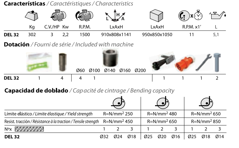 Dobladora de fierros DEL32 TRIFÁS 2,2kW LEMACO