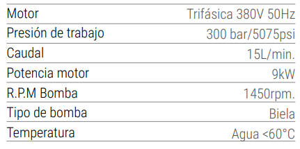 Modelo Luster 300.15 trifásica agua fría, de gran potencia y durabilidad, para trabajos que requieren uso diario,. Motor potente de 12 HP da una constante presión para el trabajo. Estructura en metal pintado con cubierta de acero inoxidable. Bomba con cigüeñal de 1450 rpm, válvula de seguridad y manómetro para un mejor control de la presión.