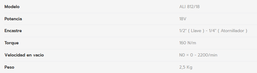 LLAVE-ATORNILLADOR IMPACTO 1/2'; 18v SIN BAT ALI812 GLADIATOR