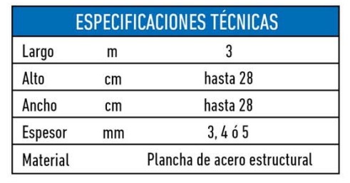 • Molde de calzada 180x150mm de 3metros de largo, en plancha de 3mm de espesor