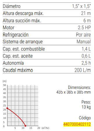 Motobomba a gasolina semi profesional tipo centrífuga. Fiable, eficiente y robusta.
