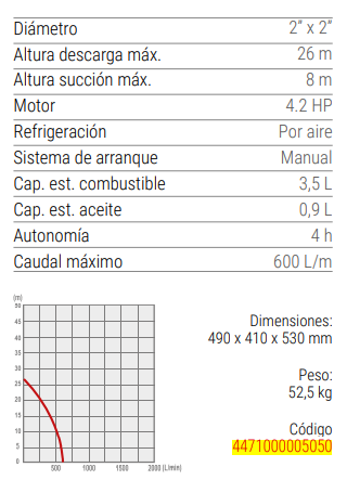 Motobomba diésel caudal 2” x 2” de partida manual con piola retráctil. Confiable, eficiente y robusta. Diseñada para proveer de agua donde usted lo necesite.