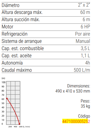 Motobomba diésel de alta presión 2” x 2” de partida manual con piola retráctil. Confiable, eficiente y robusta.