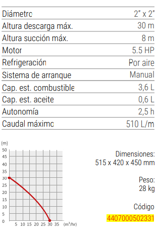 Motobomba tipo centrifuga a gasolina.
