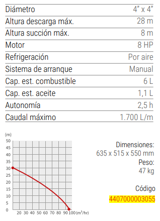 Motobomba LONCIN 4"X4" 1800 Lts/Min Gasolina