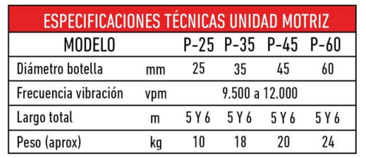 SONDA VIBRADOR DE TIPO PENDULAR, para concreto, accionadas por unidades motrices a gasolina o eléctricas. Cabezal 45mm, largo total 6m