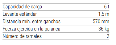 Por las características de su diseño, son ideales para aplicaciones en mantención y construcción. Equipo testeado de acuerdo a los estándares europeos. Es de baja mantención y poseen disco de freno libre de asbesto. Son adecuados para levantar grandes pesos y poder trasladarlos y colocarlos donde se desee sin mayor esfuerzo.