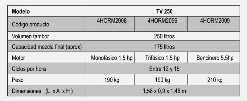 • Capacidad de mezcla 160 litros.